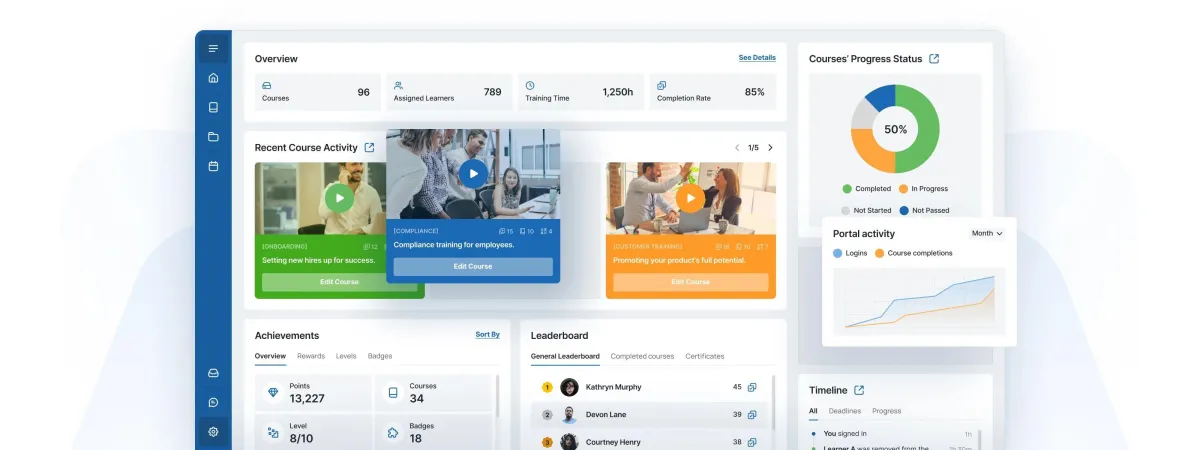 Involucre y motive a los jugadores: utilice nuestras herramientas multimedia para crear contenido de curso interactivo y atractivo.