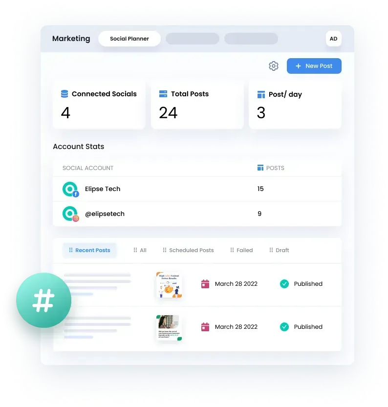 Gestión de redes sociales: gestione todas sus cuentas de redes sociales sin esfuerzo desde un solo lugar.